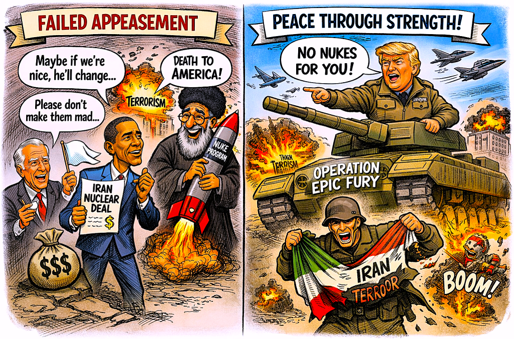 - The Price of Appeasement: Why Confronting Iran Now Prevents World War IIIBy Phil Orenstein ChatGPT generated image I was raised in a Democratic family and remained a Democrat until 20 years ago. But that Democrat Party no longer exists. Where is the Democrat party of FDR, Truman, and JFK, resolute fighters…