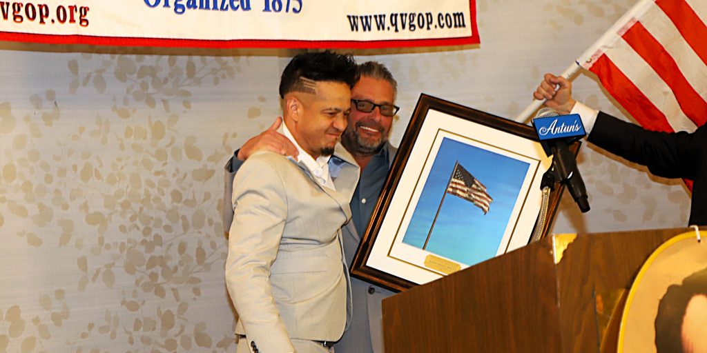 Scott LoBaido, the “Relentless Patriot” delivers the Lincoln Address at the 151st Anniversary Lincoln Dinner Gala. Scott introduces Shawn DVS 7.0 and presents him with the Christian Conservative Artist of the Year Award. DVS 7.0, an American Patriot and Christian rap artist, sings loud and proud at conservative political events, using his platform to spread messages of faith, family, American values, unity, and conservative politics. Scott LoBaido provided the American Flag Print awards as a generous and heartfelt donation in order to properly celebrate all the extraordinary honorees at the 151st Anniversary Lincoln Dinner.