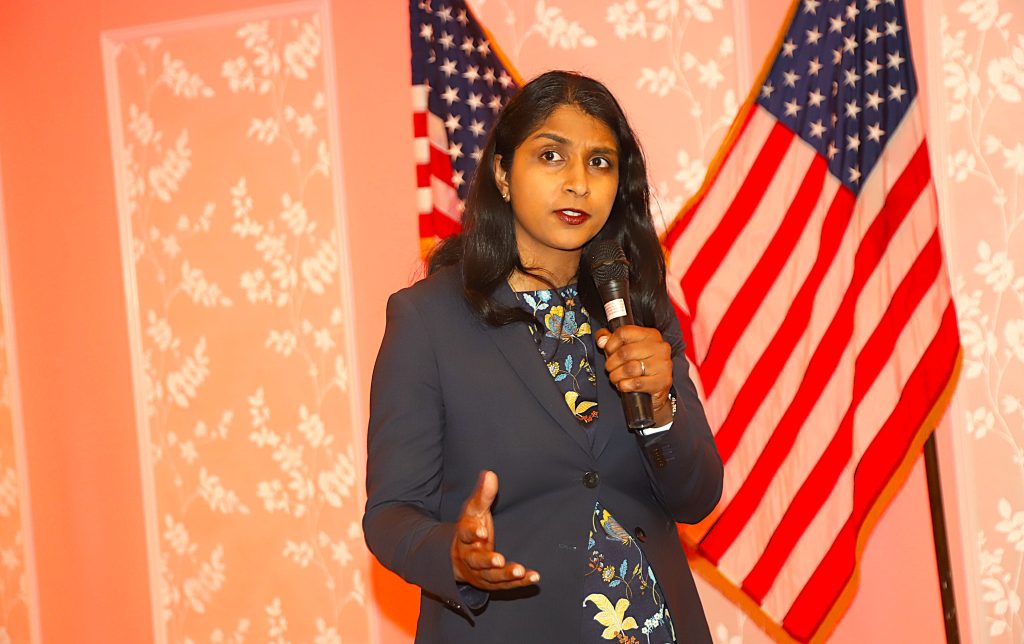 Saritha Komatireddy is introduced by Master of Ceremonies, Joe the Box. Saritha is a respected former prosecutor, national security expert, and public servant with a career devoted to upholding the rule of law and protecting Americans. Saritha, the only prosecutor in the race, will defeat Letitia James.